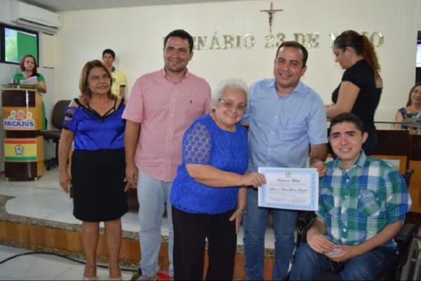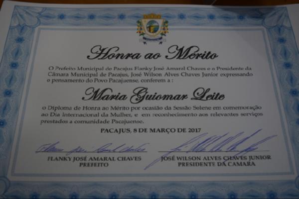 O Prefeito Municipal de Pacajus, a Secretária de Trabalho e Desenvolvemento Social e o Presidenter da Câmara de Vereadores realizaram uma Solenidade em comemoração ao Dia Internacional da Mulher. Na ocasião, foram feitas homenagens às mulheres destaques pacajuenses.